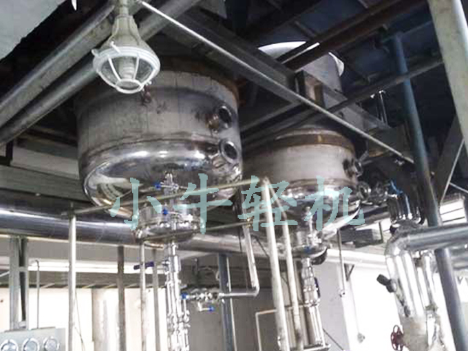 中央循环结晶器的蒸发室是加热室上部的圆筒体,溶液经加热后汽化,必须具备一定高度和空间,使汽液进行分离,二次蒸汽上升,溶液经中央循环管下降,这样保证溶液不断循环和浓缩。蒸发室的高度,主要根据防止料液被二次蒸汽夹带的上升速度所决定,同时考虑清洗、维修加热管的需要,一般为加热管长度的1.1~1.5倍。蒸发室设有视镜、人孔、洗水、照明、仪表、取样等装置,顶部有捕集器装置,主要使二次蒸汽可能夹带的汁液进行分离,保证二次蒸汽的洁净,有利于提高次一效浓缩锅的传热效果,也减少料液的损失,顶部与二次蒸汽排出管相连。
